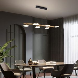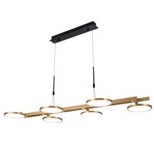 Gold Hued Linear Base 18 Watt 6 Disc LED Pendant Light